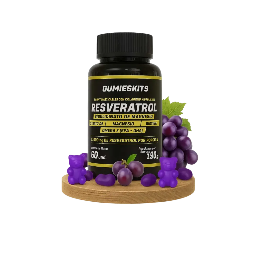 Las gomitas de resveratrol son fuente de polifenoles con efecto antioxidante, asociados a la salud cardiovascular y la longevidad.
